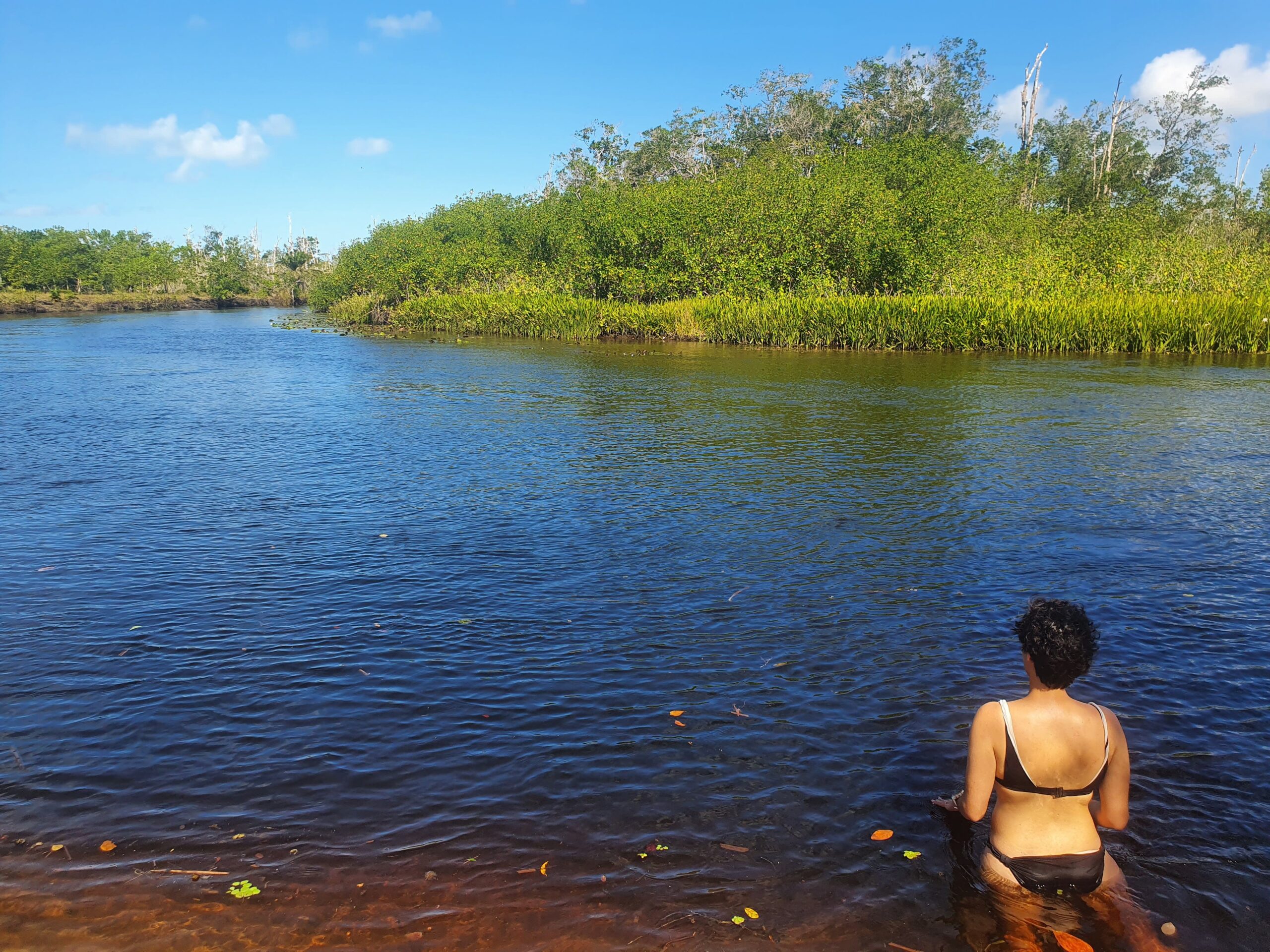 Navegando rio acima com um guia Pataxó, o que parecia só paisagem vira lição viva de conexão. O mangue, que alimenta o mar, recebe os nutrientes da montanha. O rio nasce na floresta, desce da serra e encontra o oceano num ciclo simples, mas que só se vê quando a gente está dentro dele.