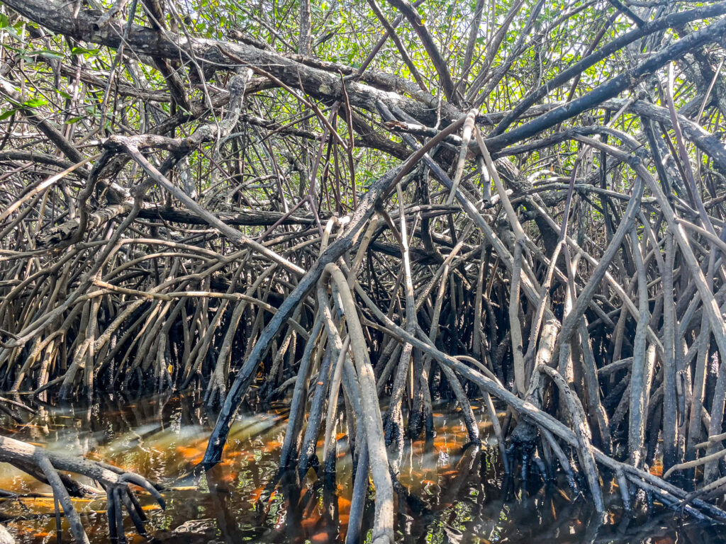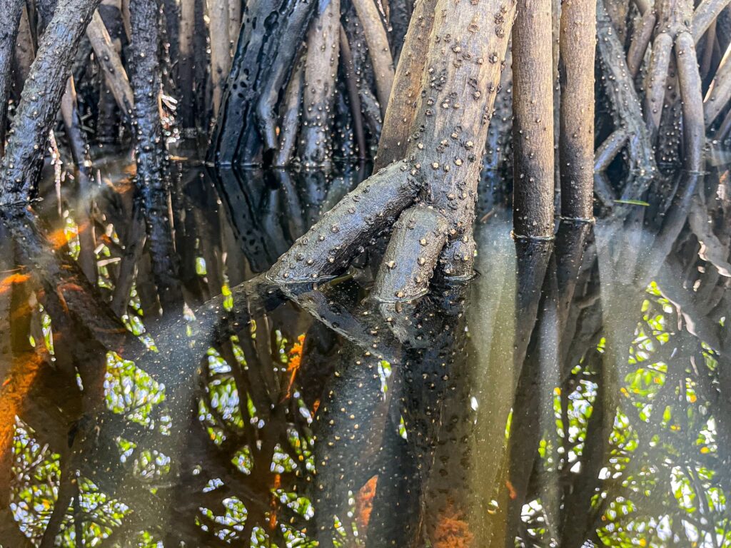 Ali, os mangues não são apenas paisagem: são berçários. Fixam carbono, filtram a água, alimentam peixes, protegem a costa. São raízes que se entrelaçam por baixo e por cima da terra, segurando tudo, inclusive a memória do que foi e do que pode continuar sendo.